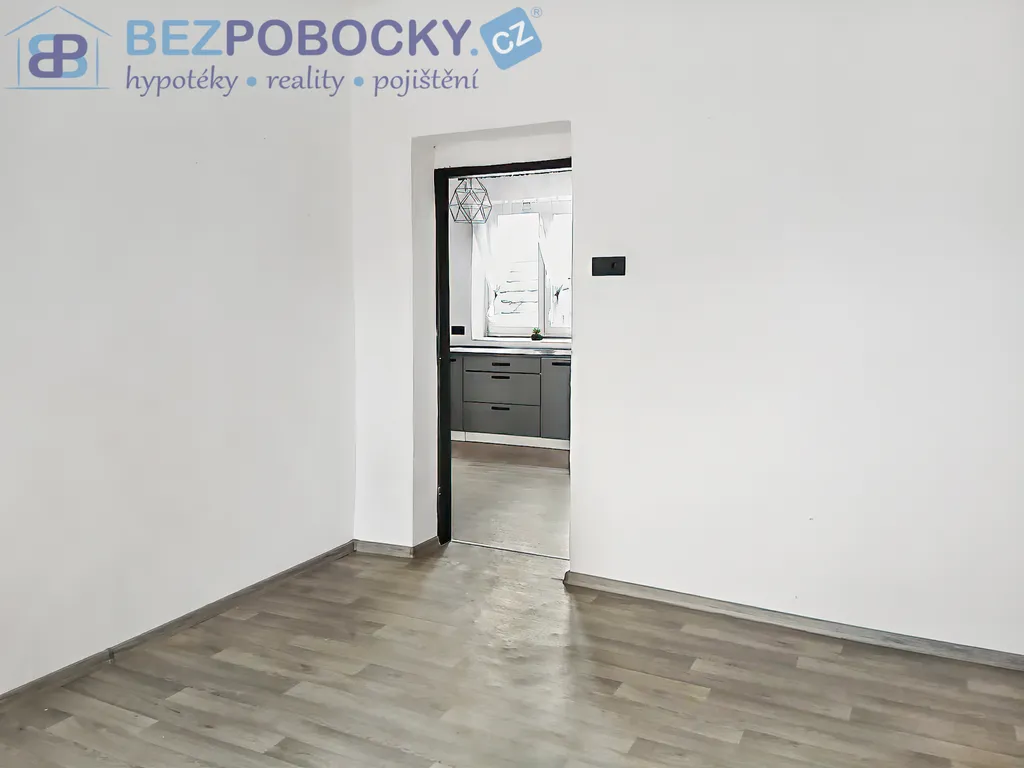 Dále je v přízemí kuchyň s novou kuchyňskou linkou, spíž, ložnice, dětský pokoj, koupelna a obývací pokoj s krbem s výměníkem, který zajišťuje vytápění celého domu. Z obývacího pokoje je přímý vstup na nově vybudovanou prostornou dřevěnou a zastřešenou terasu.