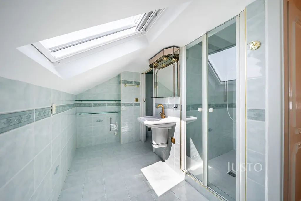Dispozice bytu je velmi praktická. V první úrovni se nachází vstupní chodba, samostatná koupelna a toaleta, prostorná kuchyň, šatna a tři samostatné pokoje. V podkroví je pak velký obytný pokoj, který je doplněn o druhou koupelnu s toaletou. Celkově byt nabízí dostatek prostoru pro rodinu i jednotlivce, kteří hledají komfortní bydlení s možností oddělených pracovních či relaxačních zón.
