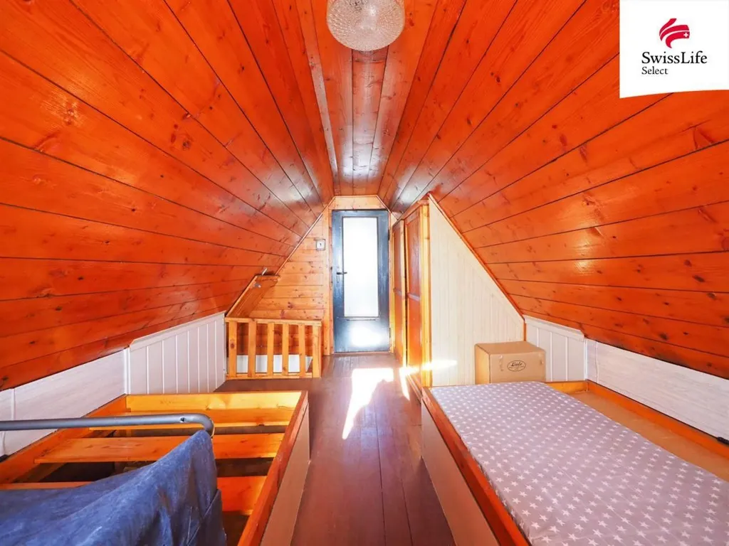 Nabízíme exkluzivně k prodeji pozemek se zahradní chatou o dispozici 2+kk v zahrádkářské kolonii Obora v Novém Městě na Moravě. Je situován na jihovýchodním okraji městské zástavby na ploše o celkové výměře 325 m2. Charakter pozemku je mírně svažitý a po celém obvodu je ohraničen pletivovým plotem. Stavba chaty je řešena jako jednopodlažní s obytným podkrovím a částečným podsklepením. Svislé i vodorovné nosné konstrukce jsou dřevěné, konstrukce střechy je sedlová s krytinou z eternitových šablon a asfaltového šindele na bednění. V roce 2020 byla realizována dílčí rekonstrukce střechy a opláštění štítové a boční stěny. Dispozice přízemí: zádveří (3,00 m2) a denní místnost s kuchyňským koutem (13,44 m2). Podkroví, kde se nalézá ložnice (13,44 m2) a úložný prostor (3,00 m2), je přístupné po dřevěném schodišti. Objekt je napojen na sítě technické infrastruktury: vodovodní a elektro přípojka. Odpad je řešen betonovou jímkou. V roce 2021 byla pod chatou vybudována zastřešená dřevěná pergola o ploše 23 m2 a v roce 2023 byla vystavěna zděná udírna. V letech 2019 a 2020 proběhla revitalizace zahradní zeleně, plocha byla nově zatravněna a osázena mladými dřevinami. Město Nové Město na Moravě disponuje plnou občanskou vybaveností (školy, obchody, služby, kulturní zařízení, městské lázně, pošta, nemocnice, MHD, sportovní areály).