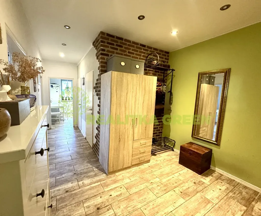 Dispozičně: vstupní chodba, prostorná kuchyň s jídelním koutem, obývací pokoj, ložnice s francouzským oknem, koupelna s vanou, samostatné wc. Kuchyňská linka je vybavena horkovzdušnou troubou a indukční varnou deskou.
