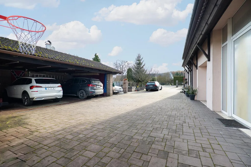 Parkování je zajištěno garáží pro jeden vůz, krytým přístřeškem pro dvě auta a dalšími parkovacími místy přímo na pozemku.
