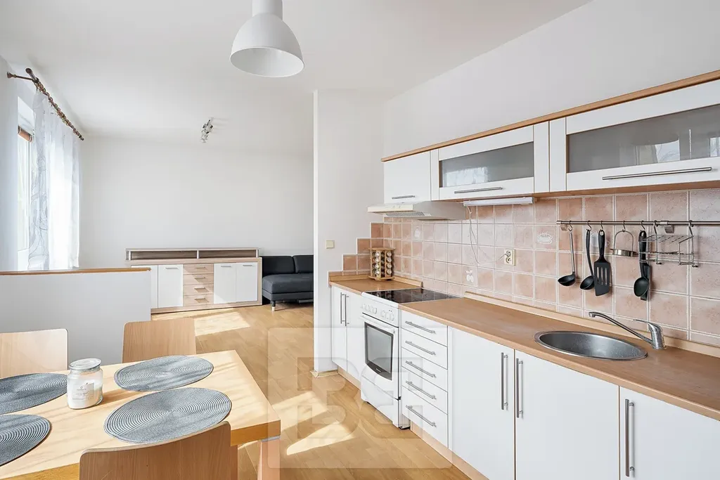 Součástí bytu je kuch. linka se sklokeramickou deskou, troubou, lednicí a mrazákem (jiná než na foto) a mikrovlnkou. Prostorná koupelna s vanou a větší samostatné WC. Ideálně pro mladý pár i s dítětem. Pouze k dlouhodobějšímu pronájmu pro slušné nájemce, nekuřáky a bez zvířátek nebo dle dohody.