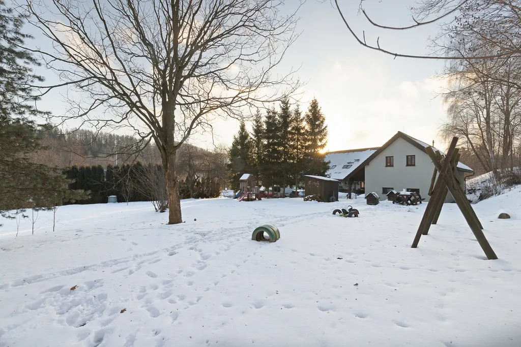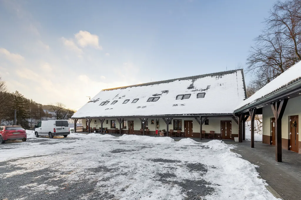 Penzion VINCENT je areál o celkové výměře 6 911 m² zahrnuje dvě samostatné budovy o dvou podlažích s celkovou užitnou plochou cca 760 m² a kapacitou 48 lůžek. Součástí je nádvoří, parkování pro cca 15 vozidel, sportovní a relaxační plochy, dětské hřiště, společenská místnost i technické zázemí. Vytápění je řešeno plynem s podlahovým topením, objekt je napojen na obecní vodovod i kanalizaci. Zásadní investiční výhodou je volný rozvojový prostor. Před budovou se nachází pozemek o velikosti cca 1 150 m², vhodný pro další výstavbu – například rozšíření apartmánů, wellness zázemí či samostatné rekreační jednotky. Za objektem je další plocha o velikosti cca 1 450 m², kterou lze využít pro další ubytovací kapacity, sportovní zázemí, eventový prostor, svatební místo nebo doplňkové služby pro hosty.
