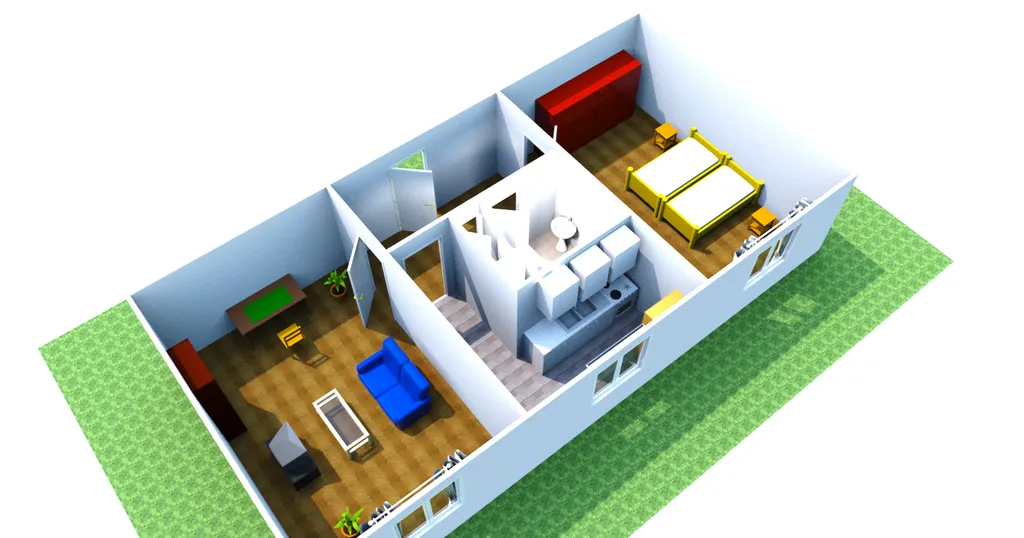 Dispozici bytu tvoří vstupní předsíň, samostatná kuchyně, obývací pokoj umístěný vlevo od vstupu s lodžií a druhý pokoj umístěný vpravo od vstupu. Součástí bytu je dále koupelna, samostatné WC. Dispozice je praktická a bez průchozích místností.