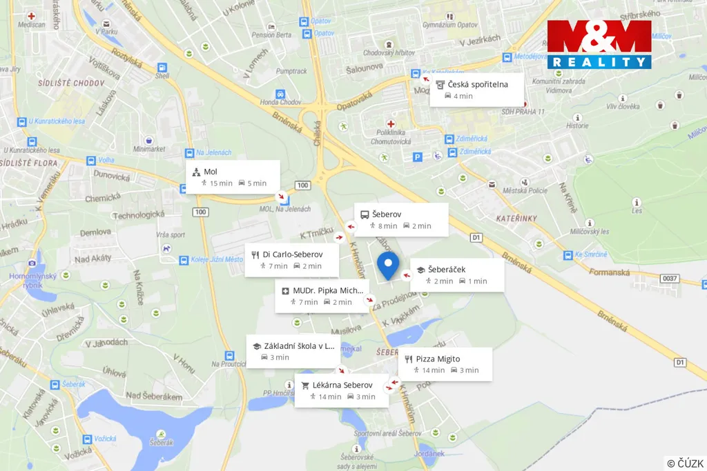 Prodej útulného rodinného domu v atraktivní lokalitě Prahy 4, který byl zkolaudován v r. 2009, s garáží, zahradou, zahradním domkem a krytým posezením o celkové výměře 537 m2. Dispozice 4+kk: v přízemí je obývací pokoj s kuchyňským koutem, prostorná šatna, koupelna s parním sprchovým koutem, toaletou a komora. V patře jsou tři ložnice, ze kterých je vstup na terasu, koupelna s rohovou vanou a samostatná toaleta. Podlahové vytápění zajišťuje elektrický kotel, teplou vodu bojler, internet wifi a satelit. Praktický centrální vysavač, alarm a v patře je klima zn. Toshiba. Parkování v garáži pro jeden automobil a dvě místa na zpevněné ploše na pozemku. Vjezd vraty s pojezdem. Samozřejmostí je veškerá občanská vybavenost. Ze zastávky autobusu, která je vzdálena 5 min chůze, je to jedna stanice na metro Opatov. Snadno dostupná D1. Výhodou je blízkost krásné přírody - Kunratický les, Milíčovský les s rybníky i známá Hostivařská přehrada. Neváhejte si domluvit prohlídku tohoto útulného domu