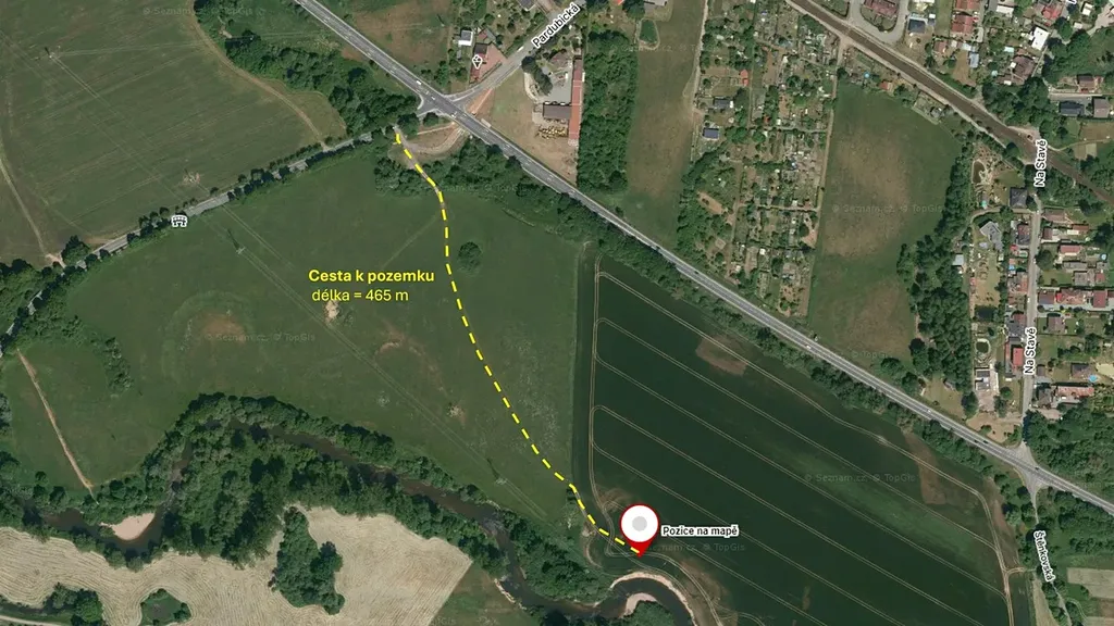 Přístup k pozemku je možný z více stran. První je z ulice Pardubická = vzdálenost 465m , případně pak z ulice Štěnkovská = vzdálenost 520m.
