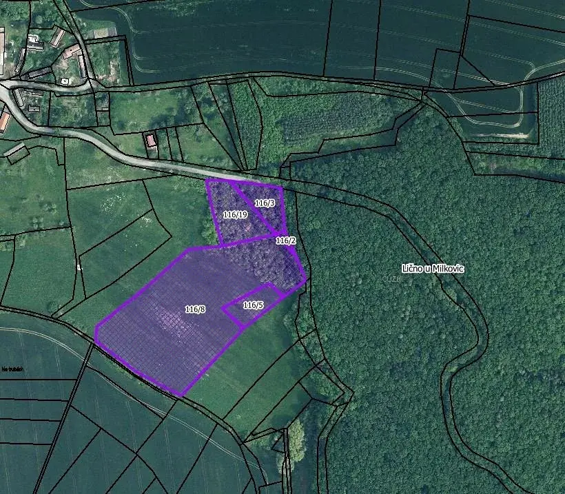 Nabízíme k prodeji soubor pozemků o velikosti 26 393 m2 v katastrálním území Lično u Milkovic. Pozemek je v současnosti hůře přístupný, je potřeba zřídit cestu z hlavní komunikace (provést terénní úpravy, zhotovit si vlastní komunikaci). Z pozemku je krásný výhled do krajiny.