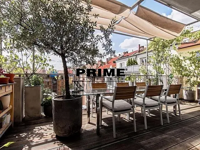 Nedávno postavený, exkluzivní, klimatizovaný, 3 ložnicový, NEZAŘÍZENÝ mezonetový byt se 2 koupelnami k pronájmu, 4+kk, 260m2, se 3 terasami (celkem 194m2), situovaný v 5. a 6. patře kompletně zrekonstruovaného bytového domu s výtahem. Budova se nachází v rezidenční lokalitě na Vinohradech, v těsné blízkosti Náměstí Jiřího z Poděbrad, 2 minuty chůze ke stanici metra a zastávce tramvaje (4 minuty MHD na Václavské náměstí), 7 minut chůze do Riegrových sadů, 10 minut chůze k obchodnímu centru Flora s multiplex kinem, blízko obchodů, supermarketu, kaváren a restaurací.