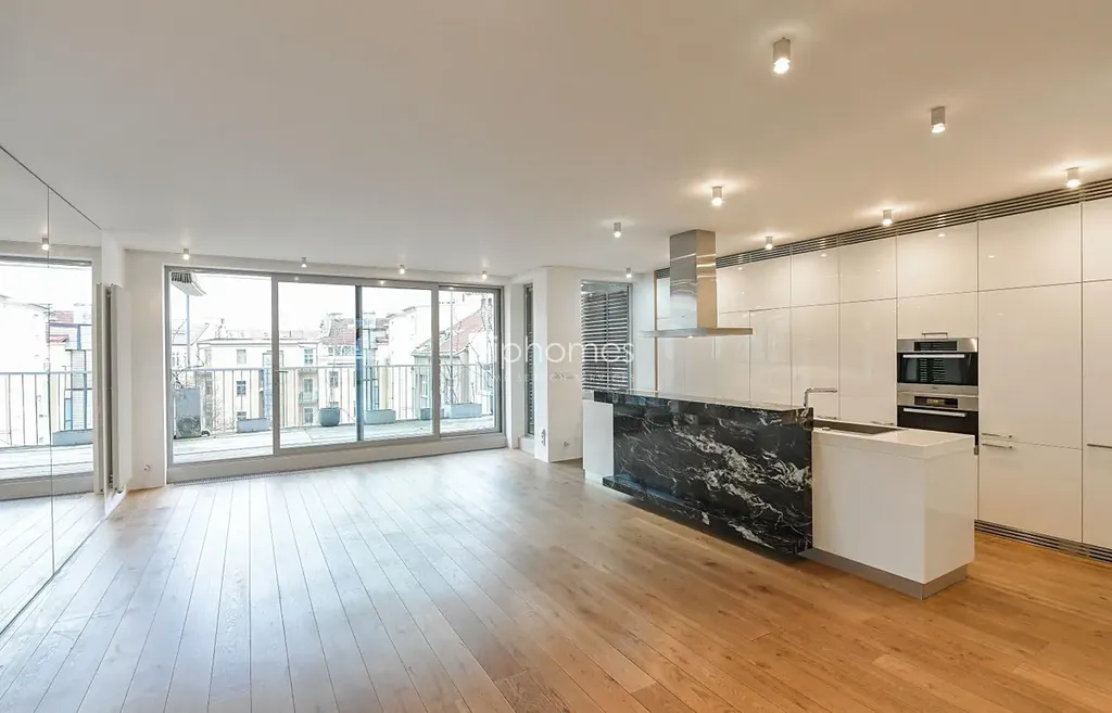Exklusivní střešní byt v minimalistickém stylu situovaný v 5. a 6. patře kompletně zrekonstruovaného klasického bytového domu s výtahem, v přímém sousedství Riegrových sadů. Budova stojí v nerušné ulici lemované stromy, pouhých pár kroků od stanice metra Jiřího z Poděbrad. Václavské náměstí je vzdálené po Vinohradské třídě pár stanic tramvají. V docházkové vzdálenosti se nachází nákupní a zábavné centrum Palác Flóra. Prestižní pražská čtvrt Vinohrady se svou atmosférou a energií místních divadel, klubů, restaurací, obchodů, a služeb nabízí pestrou paletu kosmopolitního životního stylu. Užitná plocha bytu je 273 m2, terasa o výměře 194 m2 a celková plocha je 467 m2.