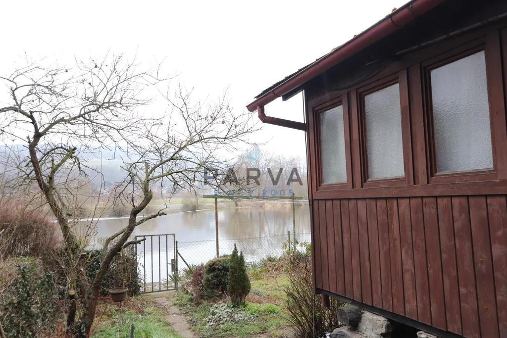 Na pozemku o rozloze 410m2 se nachází keře, stromy, záhony s květinami a posezení k odpočinku s výhledem na splav a řeku Berounku u řeky před chatou je přípojka na koš a čerpadlo na napájení vody na zalevání zahrady. Objekt je oplocený.