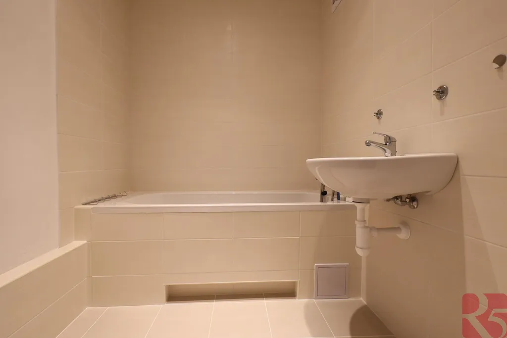 Nová koupelna s vanou, připojení na pračku. Toaleta samostatně.