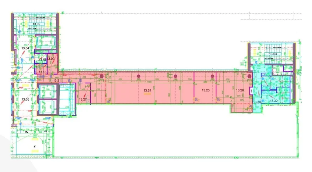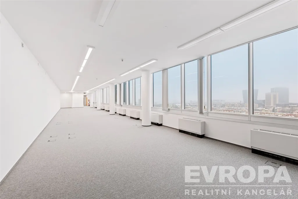 Jednotka se nachází ve 13. NP a je řešena jako velký open space s kuchyňkou. Prostory lze dispozičně upravit dle potřeb budoucího nájemce.