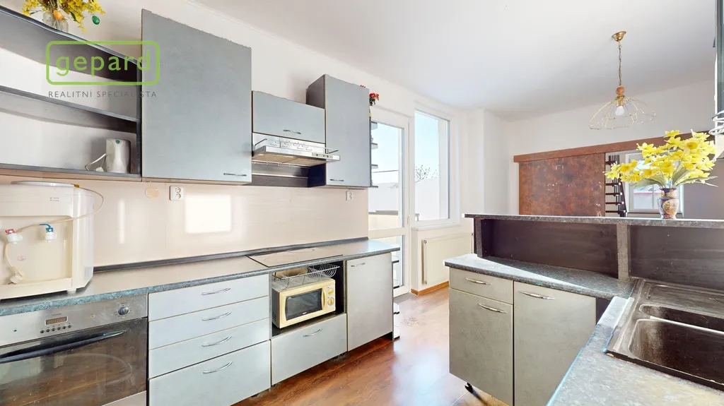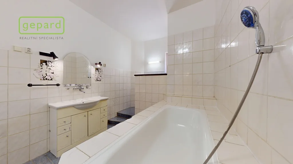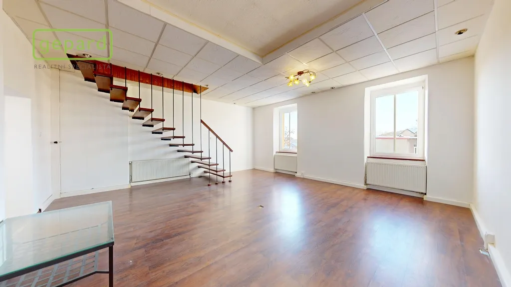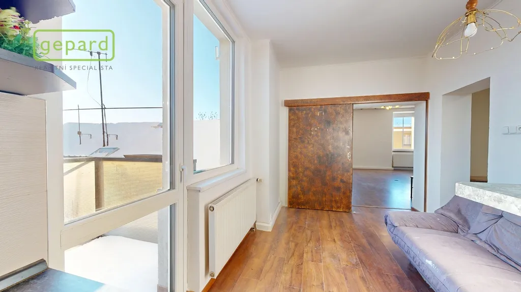 K prodeji "královská" bytová jednotka o velikosti 79,3 m2 a ateliér určený k bydlení o velikosti 25,5 m2 připojený vnitřním schodištěm + úvaha do budoucna o odkoupení půdního prostoru (cca 48 m2) a rozšíření či úplné oddělení jednotek. Benefitem je velkorysý balkon o velikosti 5,3 m2, komora v mezipatře o velikosti 1,1 m2 a sklep cca 10 m2. Bytová jednotka se nachází ve třetím nadzemním podlaží z celkových čtyř bez výtahu v domě se sedmi jednotkami (včetně zmíněného ateliéru). Celková velikost včetně příslušenství 121,2 m2.