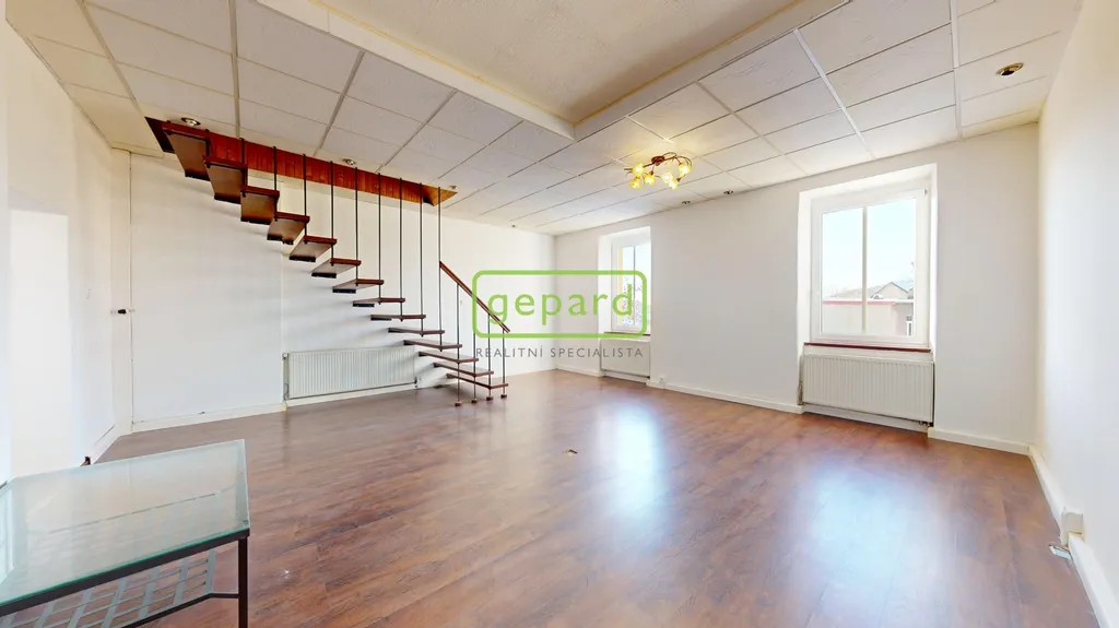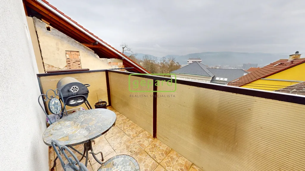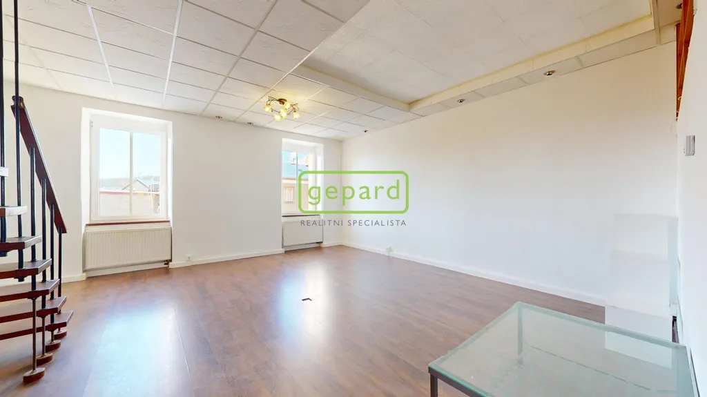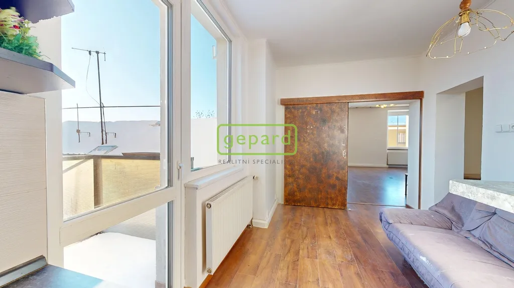 K prodeji "královská" bytová jednotka o velikosti 79,3 m2 a ateliér určený k bydlení o velikosti 25,5 m2 připojený vnitřním schodištěm + úvaha do budoucna o odkoupení půdního prostoru (cca 48 m2) a rozšíření či úplné oddělení jednotek. Benefitem je velkorysý balkon o velikosti 5,3 m2, komora v mezipatře o velikosti 1,1 m2 a sklep cca 15 m2. Bytová jednotka se nachází ve třetím nadzemním podlaží z celkových čtyř bez výtahu v domě se sedmi jednotkami (včetně zmíněného ateliéru). Celková velikost včetně příslušenství 126 m2.