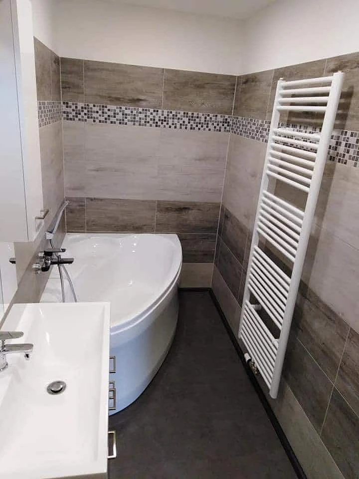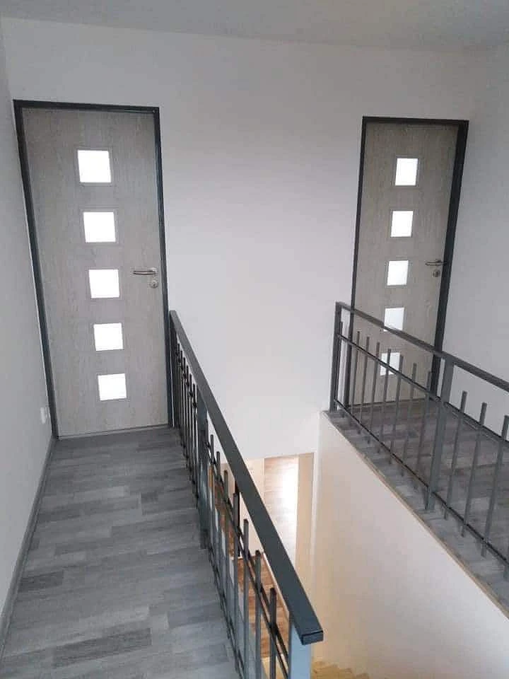 2. nadzemní podlaží: chodba s přístupem na balkon, 3 obytné místnosti, koupelna s vanou, WC, na chodbě a v obytných místnostech položena plovoucí podlaha.