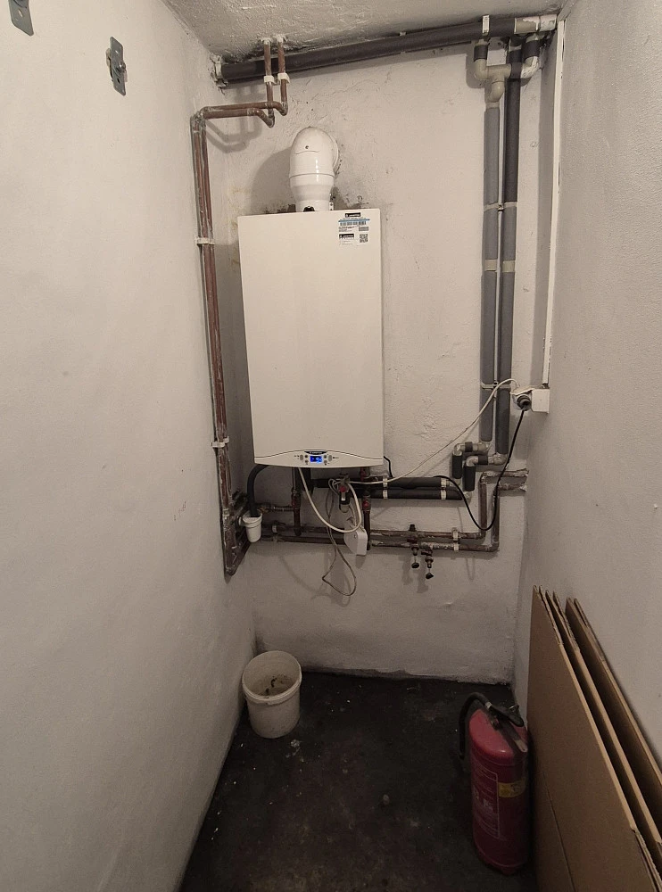 Střecha je sedlová, krytina taška, štítové stěny jsou zděné, obvodový plášť (přední a zadní fasáda) je montovaný, s dodatečným zateplením EPS, stropní podhledy ze sádrokartonových desek. Vytápění je ústřední, plynovým kotlem umístěným v suterénu domu, stáří kotle 6 let, rozvody jsou měděnými trubkami, radiátory deskové, ohřev vody je elektrickým bojlerem umístěným v suterénu domu.