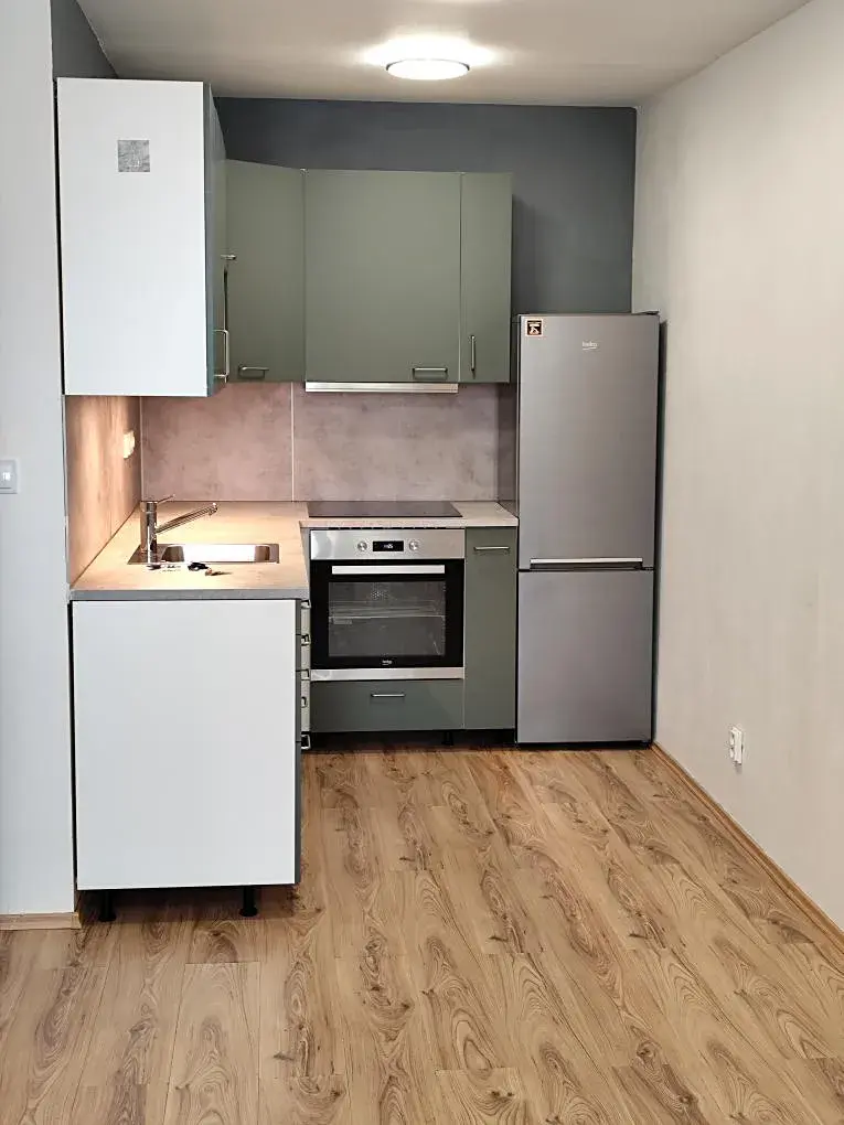 Podnájem družstevního bytu 2+kk o ploše 48 m2 v 5 .NP. panelového domu o jedenácti nadzemních podlažích ve Sportovní ulici v Mělníku. Byt sestává z předsíně, obývacího pokoje s kuchyňským koutem, ložnice, koupelny s WC, lodžie, součástí nájmu je sklepní kóje v suterénu domu. Kompletně zrekonstruovaný byt je vybaven moderní rohovou kuchyňskou linkou Ikea s elektrickou varnou deskou, vestavnou elektrickou troubou a samostatnou lednicí s mrazákem, v koupelně se sprchovým koutem je umístěna pračka, v předsíni jako úložný prostor slouží dvě vestavné skříně, podlahy laminátové, vyštukované stěny. Výhodou v horkých dnech je severní orientace bytu.