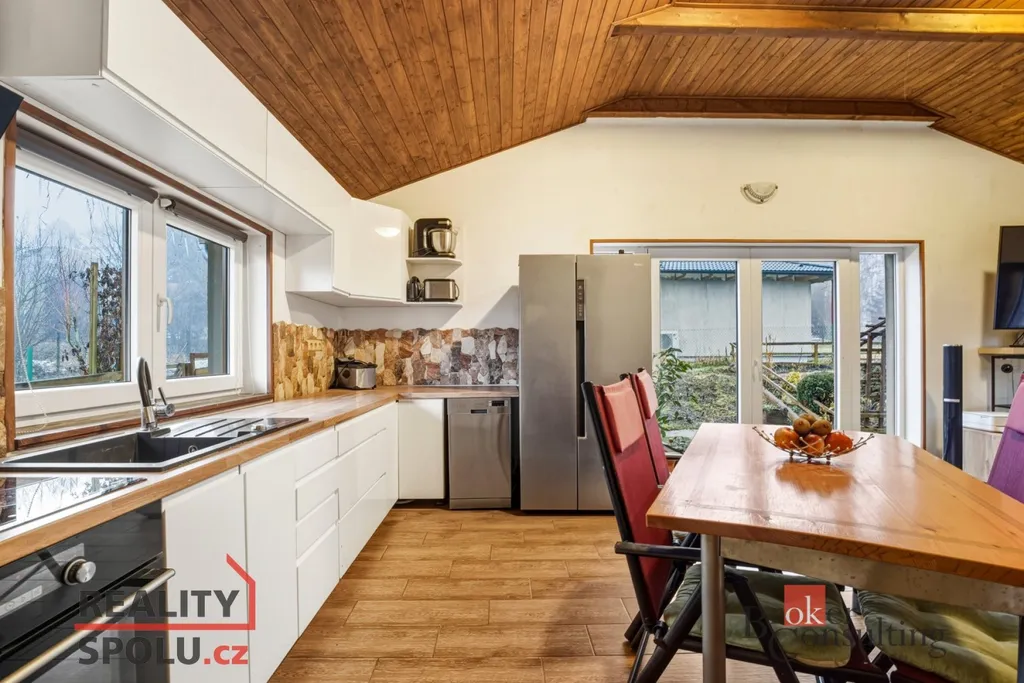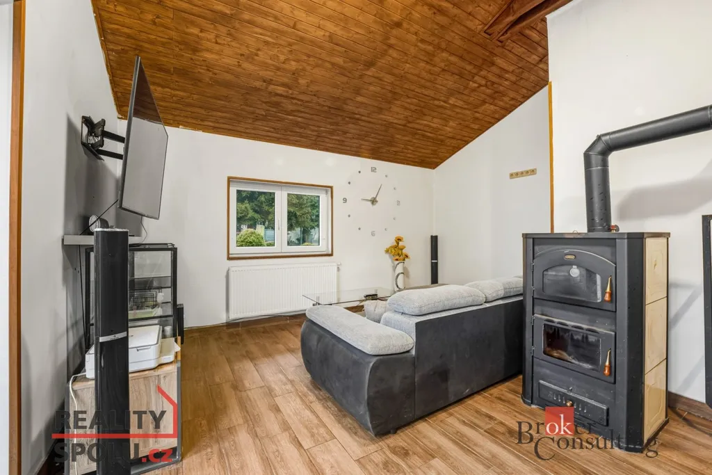 Dominantou domu je obytný prostor se vstupem na prostornou zahradu o velikosti cca 1 000 m², která nabízí dostatek soukromí i prostoru pro relaxaci, zahradničení či rodinné aktivity.