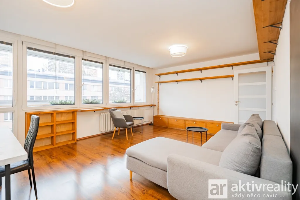 Obývací pokoj je propojen s kuchyní a tvoří příjemný centrální prostor bytu. Z této místnosti je vstup na lodžii.
