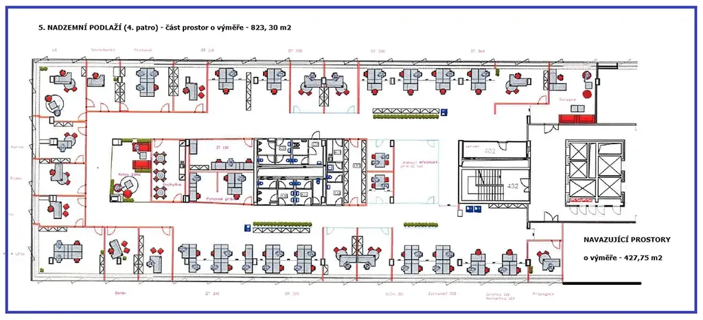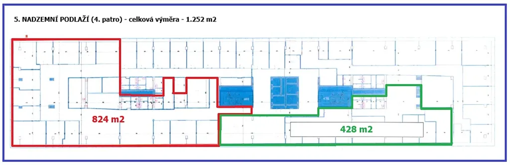 Nabídka pronájmu moderních klimatizovaných kancelářských prostor 1.252 m2, s možností rozdělení na dva samostatné bloky a) 824 m2 a b) 428 m2 (možno samostatně/nebo společně), v 5. nadzemním podlaží (4. patro) moderní administrativní budovy Rosmarin Business Center, ul. Dělnická 213/12, Praha 7 – Holešovice, vč. 32x parkovacích stání v budově. Budova v r. 2014 prošla celkovou rozsáhlou moderní rekonstrukcí. Prostory disponují vlastními kuchyňkami, příručními sklady s možností variabilního členění jednotlivých místností/kanceláří (aktuálně cca 30x místnost/kancelář s příslušenstvím). Budova Business centrum Rosmarin nabízí atraktivní a moderní standardy žádané administrativní budovy, s vlastní recepcí, parkovací stání v podzemí budovy, pošta, jídelna, fitness, taneční studio, atd. Budova má vynikající dostupnost, nachází se v blízkosti MHD a má bezprostřední napojení na pražskou magistrálu a další pražské výpadovky. Atraktivní lokalita v rychle se rozvíjející části Prahy 7 - Holešovice. V případě zájmu je možné o podmínkách a rozsahu pronájmu individuálně jednat. Nájemné 304,- Kč/m2/měs., služby 117,- Kč/m2/měsíc (obé vč. add-on factoru) + spotřeba el. energie, parkovací stání – 2.400,- Kč/měsíc (vše + DPH). K dispozici od 01.03.2026. Více informací na vyžádání.