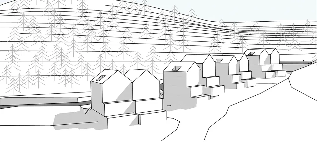 Ve vypracované studii se na ploše o výměře 2995 m2 předpokládá možnost realizace 4 dvojdomů o 1. PP a 3. NP, v rámci kterých zde vznikne 24 bytových jednotek o celkové bytové ploše 2120 m2 včetně 135 m2 teras a 24 parkovacích stání. Domy mají terasovité uspořádání hmoty, aby bylo plně využito potenciálu svažitého pozemku a zároveň terasy vytváří příjemné spojení bytu s venkovním prostředím. Horní bytové jednotky jsou koncipovány jako mezonety, spodní naopak disponují menšími předzahrádkami. V rámci zbylých ploch je ÚP určeno 1576 m2 jako VP s možností průmyslového využití či zástavby. Výborná dostupnost hřebenů Krušných hor a zde situovaných běžkařských, sjezdových a turistických tras. Vzdálenost do: Karlovy Vary 13 km, Jáchymov 11 km, Ski areál Pleš 3 km, Ski areál  Klínovec 18 km.