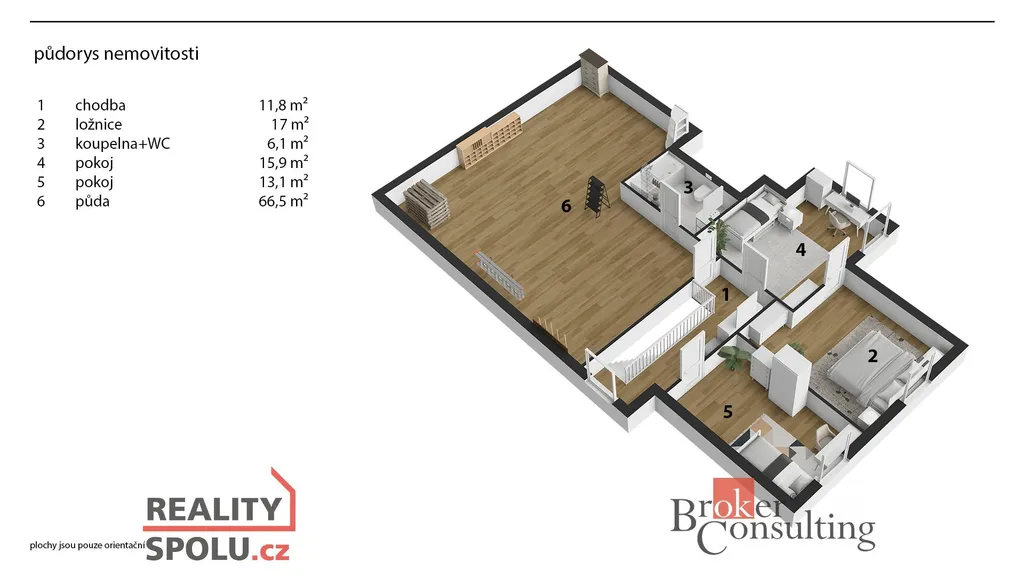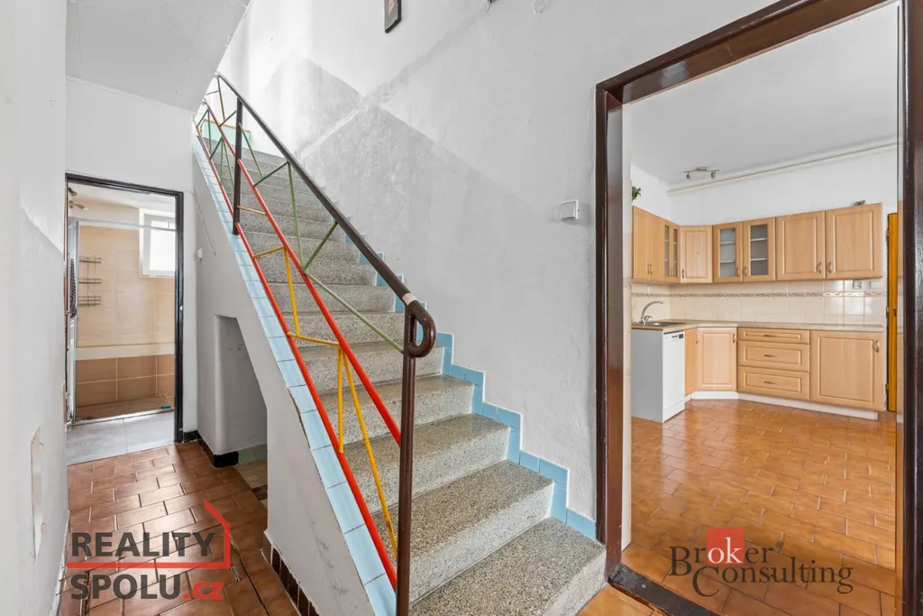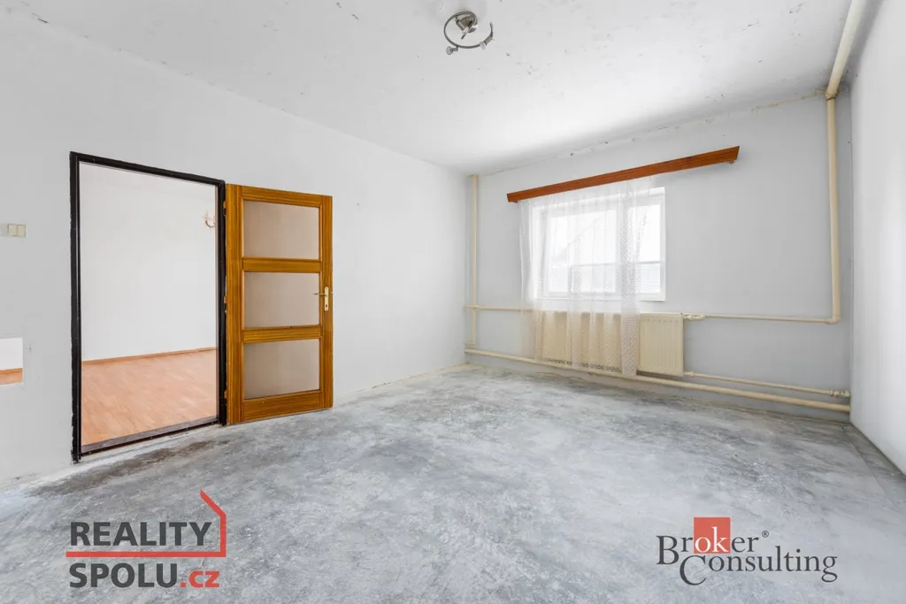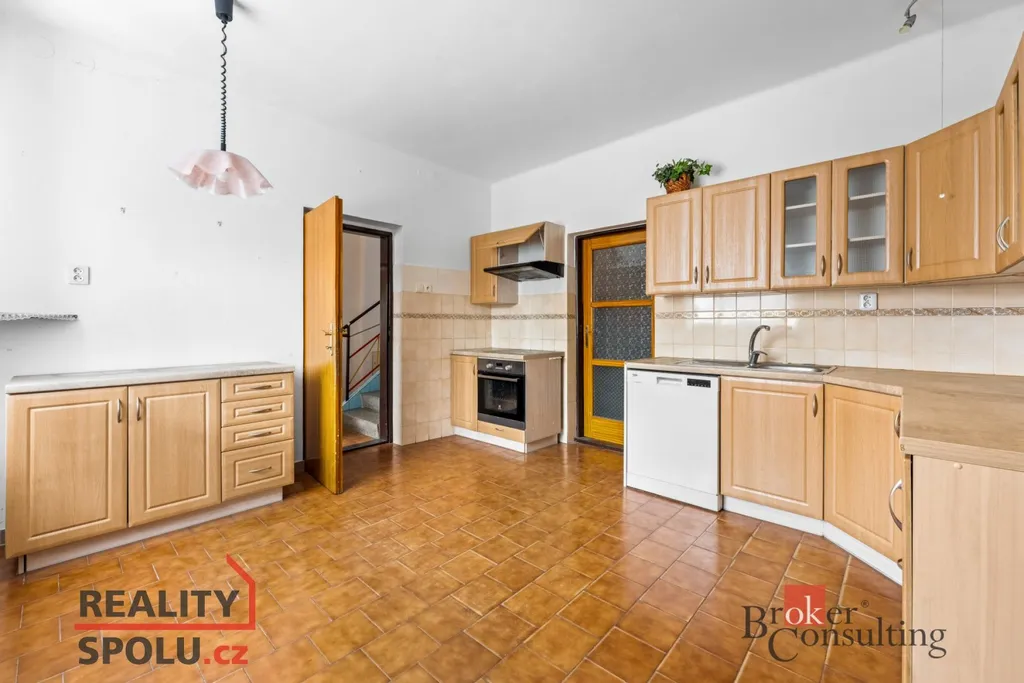 Dům je dvoupodlažní, částečně podsklepený a nabízí velmi praktickou dispozici. V přízemí se nachází vstupní zádveří, chodba, samostatný pokoj, prostorný obývací pokoj, kuchyně s jídelním koutem, koupelna, samostatné WC a komora. V patře jsou umístěny tři další pokoje, ložnice, koupelna s WC a chodba. Velkou přidanou hodnotou je půda o výměře cca 66 m², která je vhodná k vestavbě dalších obytných místností.