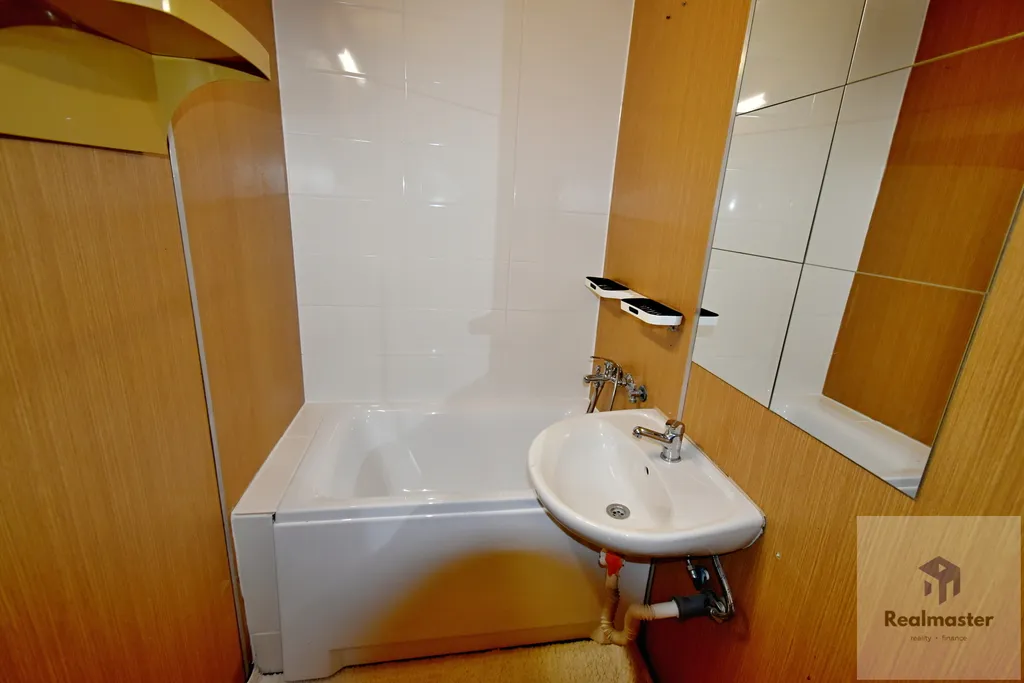 Menší byt je vybaven kuchyňskou linkou, lednicí, elektrickým sporákem. V koupelně pak hlubokou vanou, dále v pokoji dvoulůžko a stolek.
