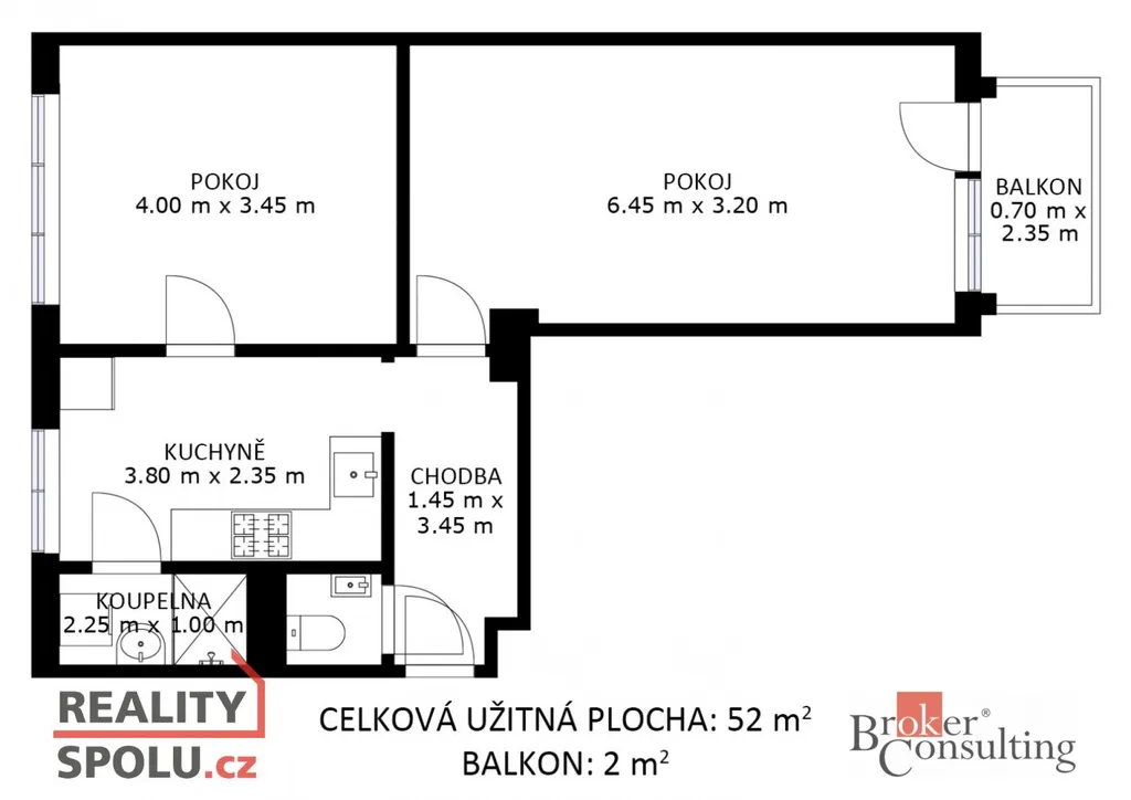 Prodej bytu 2+1 v klidné části Zbýšova u Brna – 61 m², balkon, sklep, parkování