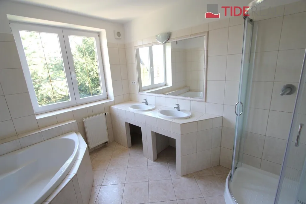 Velice pěkný prostorný a nezařízený dům (6 + 1, 290 m2) s velkou zahradou (711 m2) nabízí 5 ložnic, obývací pokoj s krbem, velkou zimní zahradu a terasu, krytý bazén, plně vybavenou kuchyň, 3 koupelny. Podlahové topení, vestavěné skříně, nízké náklady na vytápění (tepelné čerpadlo), garáž pro 2 auta. PENB třída C. Vhodné pro rodiny s dětmi, uprostřed krásné přírody s dobrou dostupností do centrální Prahy. Nájemné 69.900, Kč / měsíc. Zálohy na služby a energie 14.000, Kč/ měsíc jednou ročně zúčtovatelné dle skutečné spotřeby Nájemce. Volné od dubna 2026.