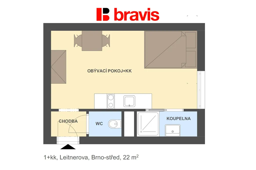 Ve výhradním zastoupení majitele nabízíme k pronájemu kompletně zařízený byt 1+kk v Brně - střed na ul. Leitnerova.