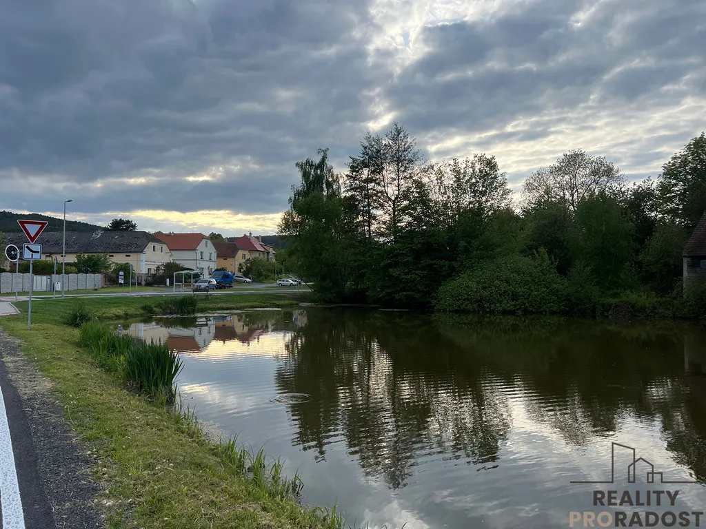 Nabízíme k prodeji rodinný dům se stodolou na krásném a klidném místě přímo u rybníka v centru obce Vlkanov, okres Domažlice.