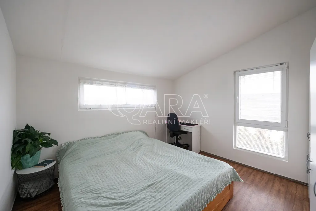 Dům o dvou podlaží je dispozičně řešen jako 4+kk, přičemž v přízemí je společenská část: obývací pokoj s kuchyňským koutem, předsíň, samostatné WC s umyvadlem a také garáž. V patře jsou tři samostané ložnice a koupelna s WC.