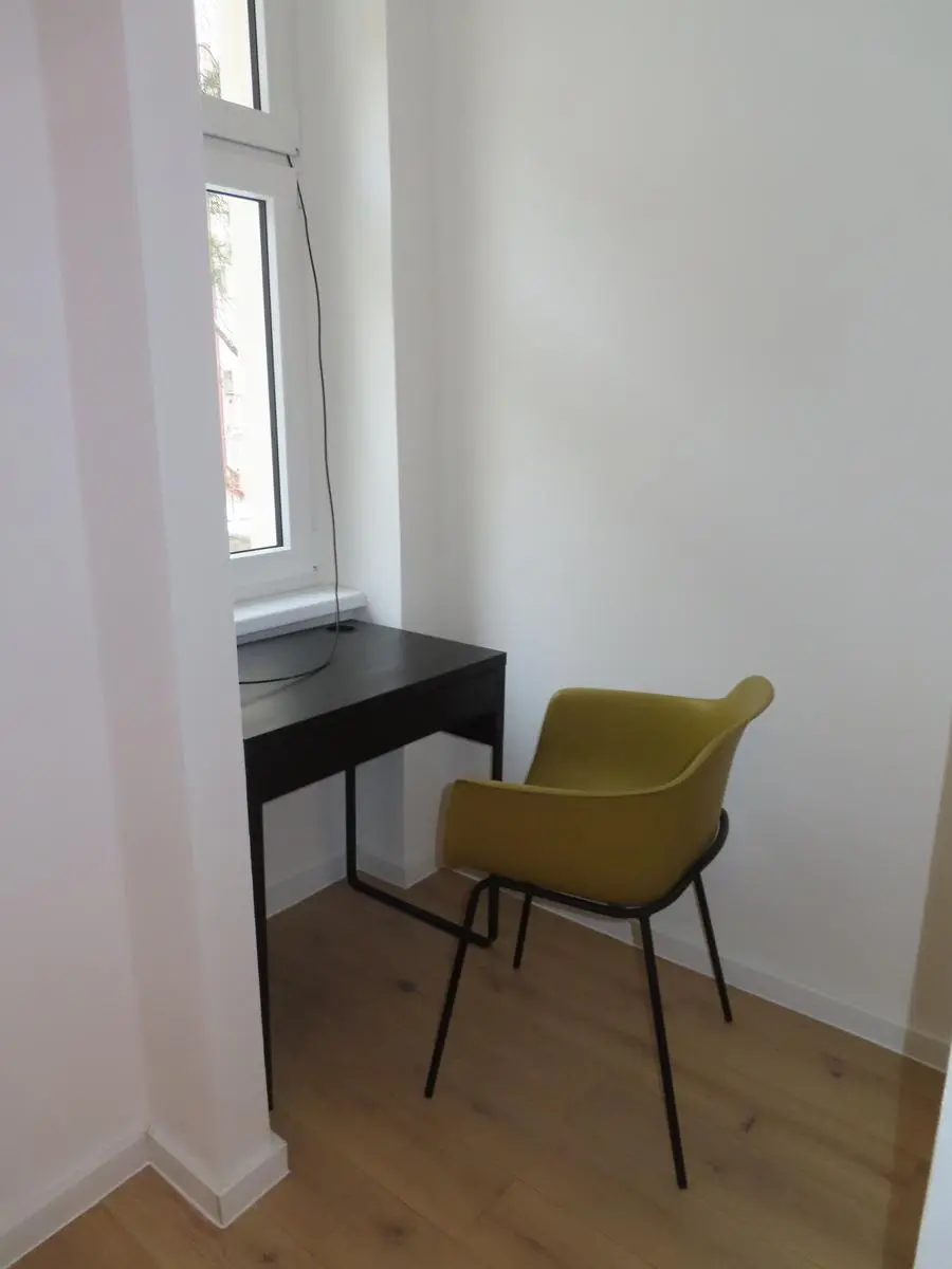 Byt je v 1.patře cihlového domu s výtahem a je orientován jen do klidného vnitrobloku. Byt má celkovou plochu 56 m2, k bytu dále náleží prostorný sklep v suterénu domu. Byt sestává ze vstupní předsíně, obývacího pokoje s kuchyní, ložnice s pracovním koutem, koupelnou a WC. Kuch. linka je vybavena zabudovanými spotřebiči - varná deska, trouba, digestoř, myčka, lednice s mrazničkou, V koupelně je sprchový kout a pračka. Byt je částečně vybaven nábytkem (jídelní stůl a židle, sedačka, šatní skříň apod.). Na podlaze je položena plovoucí podlaha a dlažba. Vytápění je elektrické podlahové, teplou vodu ohřívá bojler.