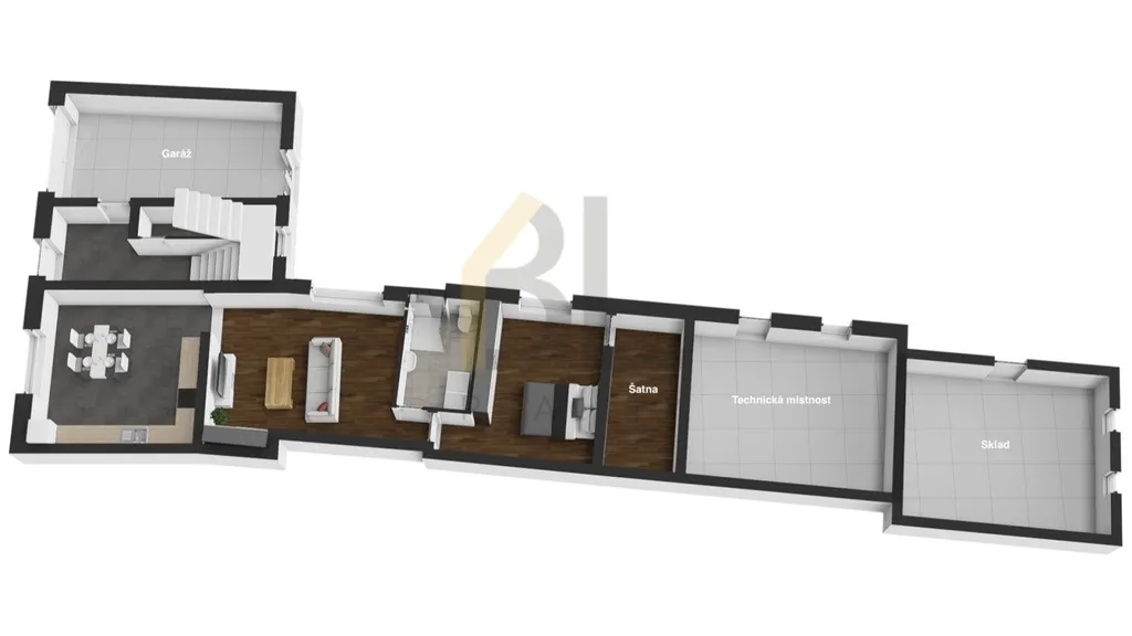 Rodinný dům nabízí velkorysou dispozici 5+1 s užitnou plochou cca 164 m², rozloženou do dvou podlaží.