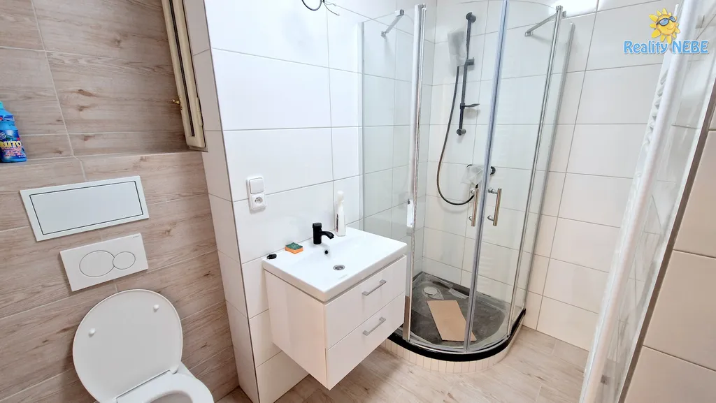 Byt je po kompletní rekonstrukci. Skládá se ze 3 neprůchozích pokojů, chodby s kuchyňskou linkou, koupelny s WC a úložné komory. Součástí je kuchyňská linka s vestavěnou troubou, myčkou a lednicí. Podlahy jsou vinylové s dřevěným vzorem, všechny místnosti jsou nově vymalované. Topení a ohřev teplé vody je pomocí nového elektrického kotle s bojlerem.