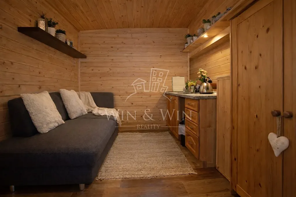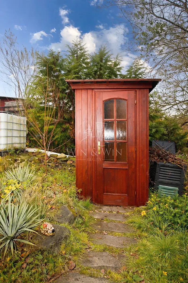 Na pozemku stojí zahradní drobná stavba po rekonstrukci (2023) se dvěma místnostmi a novou lehkou bitumenovou střechou s dlouhou životností. Slouží jako praktické zázemí pro víkendový pobyt nebo zahradničení.