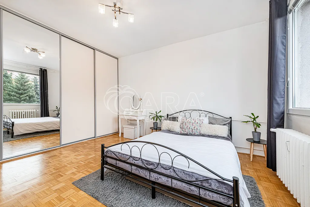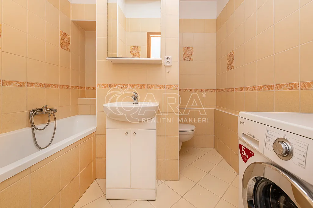 Byt je po rekonstrukci. Je vybaven kuchyňskou linkou s plynovou varnou deskou a troubou. Jádro je zděné, toaleta je spojená s koupelnou, která disponuje vanou a místem pro pračku. Vytápění a ohřev vody je centrální z vlastní plynové kotelny. Na podlahách je dlažba, vinil a v ložnici dřevěné parkety ve velmi dobrém stavu. Byt je vymalován a pečlivě uklizen.