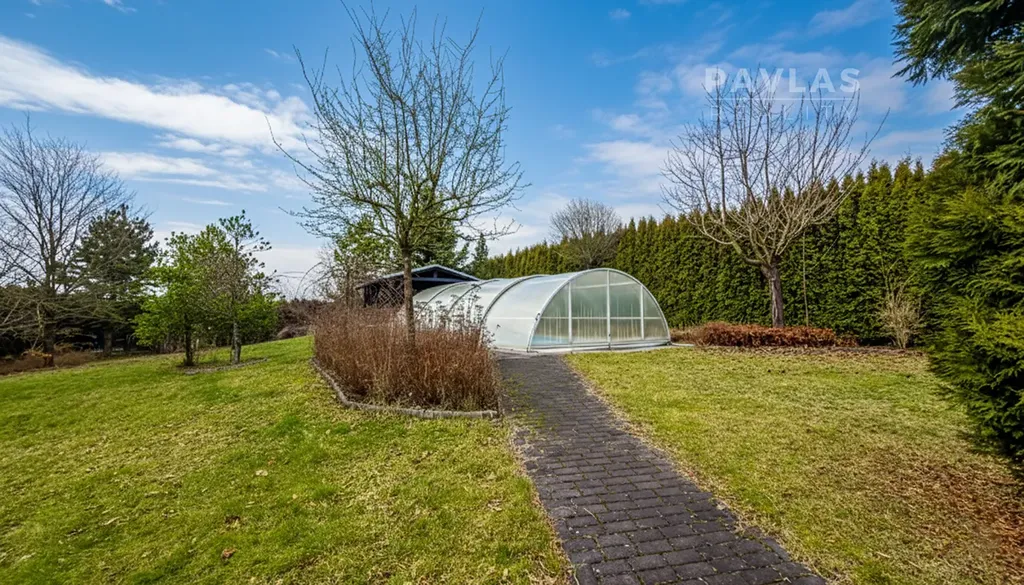 Hodnotu nemovitosti jako celku zásadně zvyšuje okolní infrastruktura a nadstandardní zázemí pozemku. K dispozici je bazén o rozměrech 6 x 3 metry se solárním ohřevem, kryté stání pro karavan či větší užitkový vůz a vzrostlá zahrada založená v roce 2002, která díky masivnímu živému plotu z tůjí poskytuje nájemníkům absolutní soukromí. Ekonomickou efektivitu provozu zajišťuje vlastní studna napojená na rozvody v domě spolu s obecním vodovodem, zatímco plyn na hranici pozemku nabízí možnost budoucí modernizace otopného systému. Tento činžovní dům v Dubičném představuje vzácnou kombinaci prostorové velkorysosti a jistoty v lokalitě, kde nabídka nemovitostí tohoto typu dlouhodobě zaostává za neutuchající poptávkou.