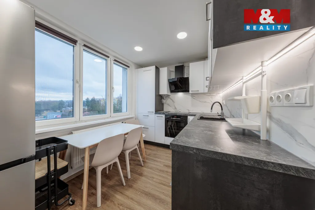 Nabízím prostorný a slunný byt 2+1 v panelovém domě o 7 patrech, který se nachází v 5. patře. Byt prošel kompletní a vkusnou rekonstrukcí – nové rozvody elektřiny, kvalitní vinylové podlahy, nové zárubně a interiérové dveře, samozřejmostí jsou bezpečnostní vstupní dveře. Kuchyň je vybavena kuchyňskou linkou na míru včetně vestavných spotřebičů, která splní nároky i náročnějších uživatelů.