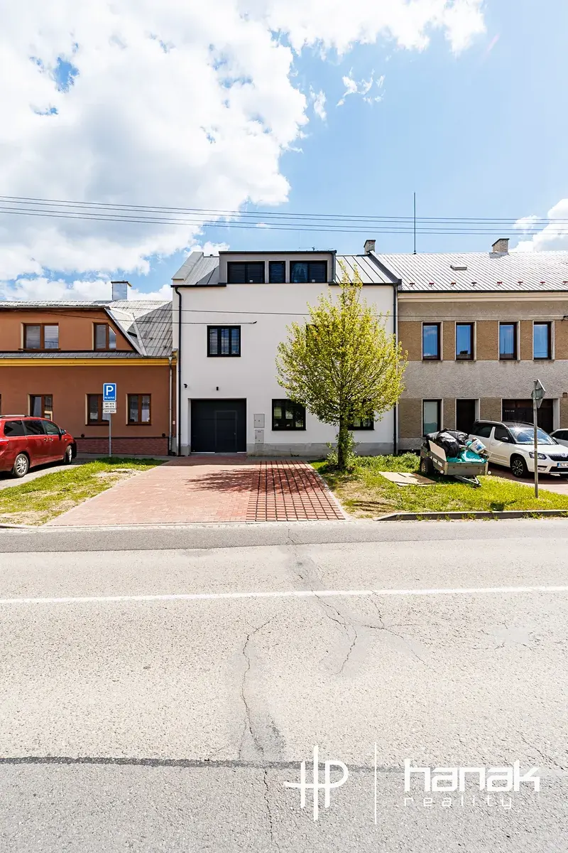Při příjezdu na prohlídku se potkáme před tři-podlažním cihlovým domem, který prošel kompletní přestavbou a rekonstrukcí. Nízkoenergetický dům má novou střechu a je kompletně zateplený. Okna osazena izolačním trojsklem jsou vybavena také předokenními elektrickými žaluziemi.