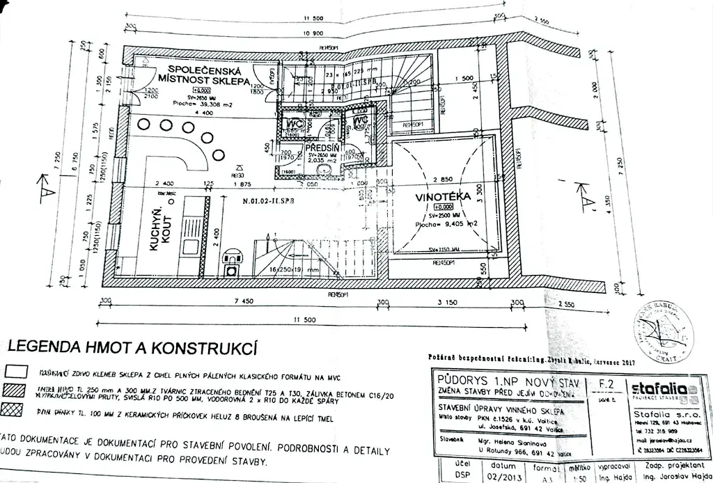 Ve vstupní části objektu se nachází společenská místnost navazující na vinný sklep, dále kuchyňské zázemí s kuchyňským koutem, vinotéka, technická místnost se sociálním zázemím a vstup do sklepních prostor