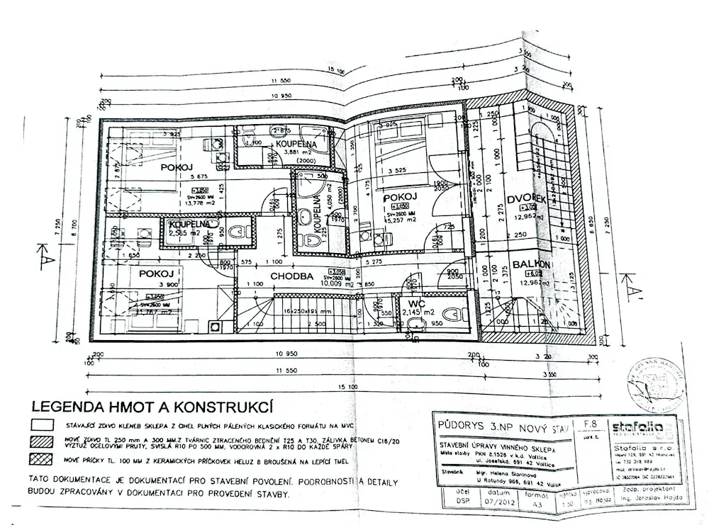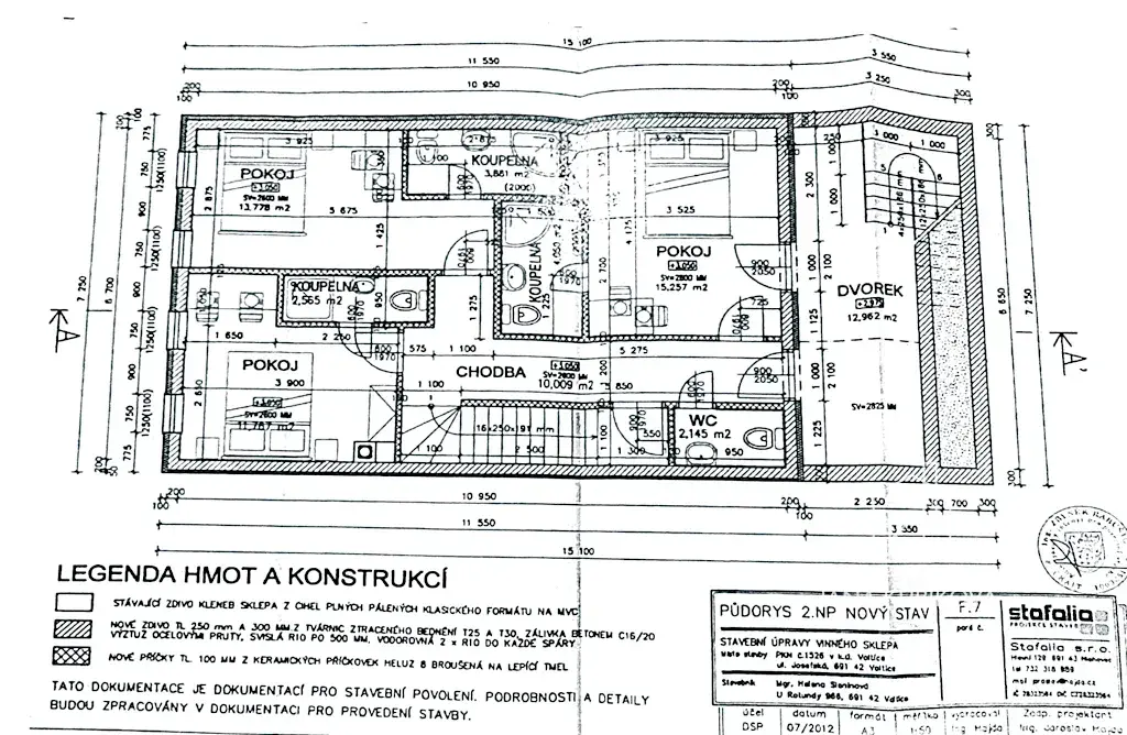 Půdorys objektu činí cca 7,25 × 11,55 m.