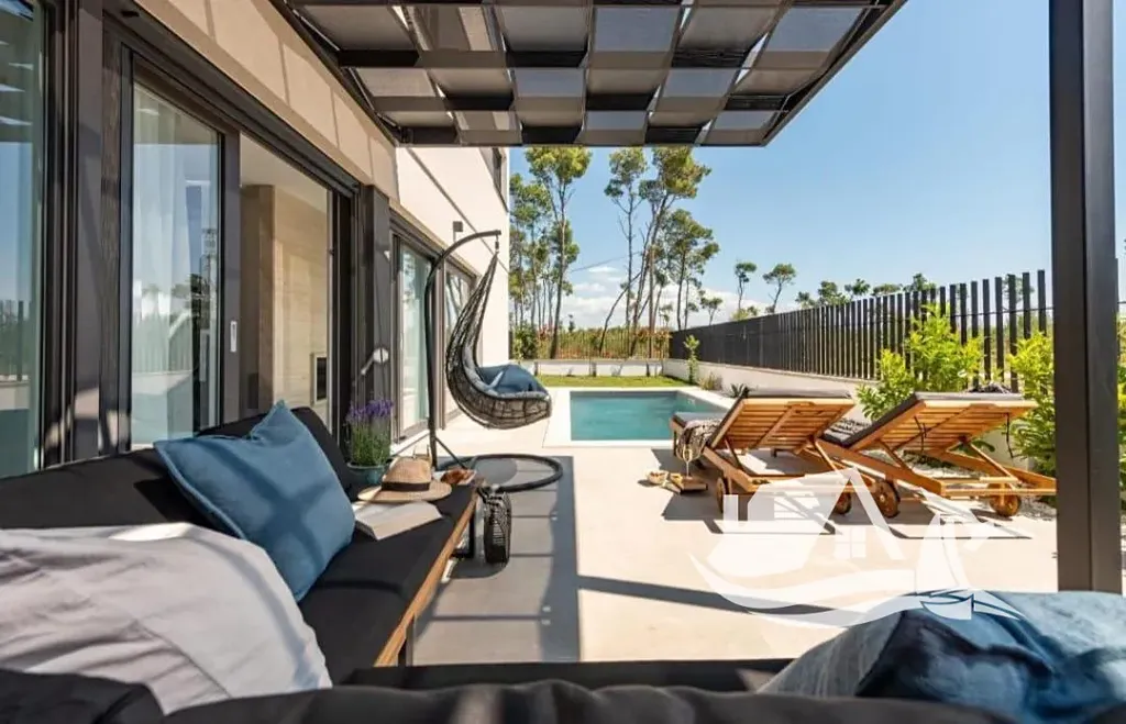 V klidné části oblíbené přímořské obce Privlaka vznikl v roce 2024 moderní dvojdům, které dávají smysl jak pro vlastní užívání, tak jako dlouhodobá investice. Dům se nachází přibližně 50 metrů vzdušnou čarou od moře, takže slaná vůně a pohled na hladinu patří k běžné denní rutině, nikoliv ke svátečním výjimkám.