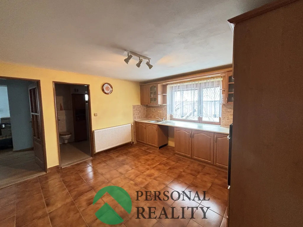 Dispozice: z chodby se vstupuje do jednoho z pokojů, dále vstup do kuchyně, z které se jde do dalších dvou pokojů a koupelny, kde je vana, WC a umyvadlo. Na chodbě je také špajz.