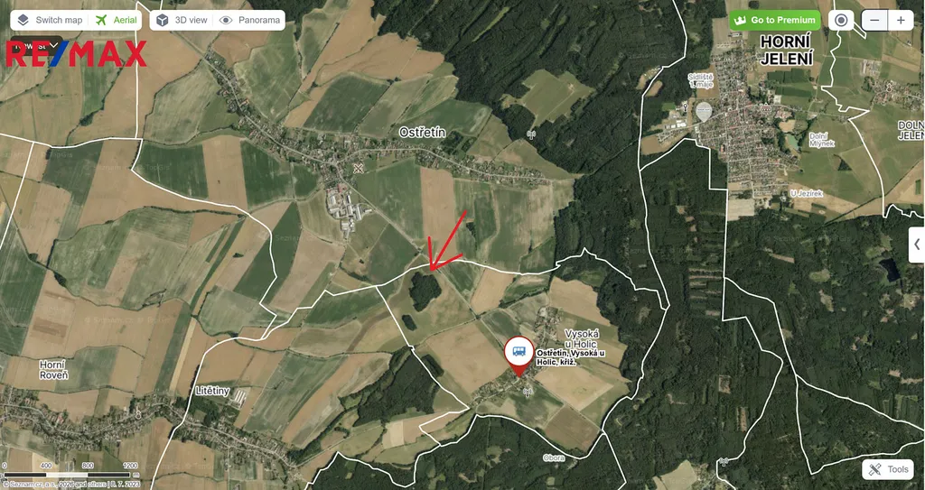 Pozemek se nachází v klidné lokalitě kousek od obce Ostřetín. V těsné blízkosti lesa vede silnice a přímo k pozemku pak státní polní cesta.