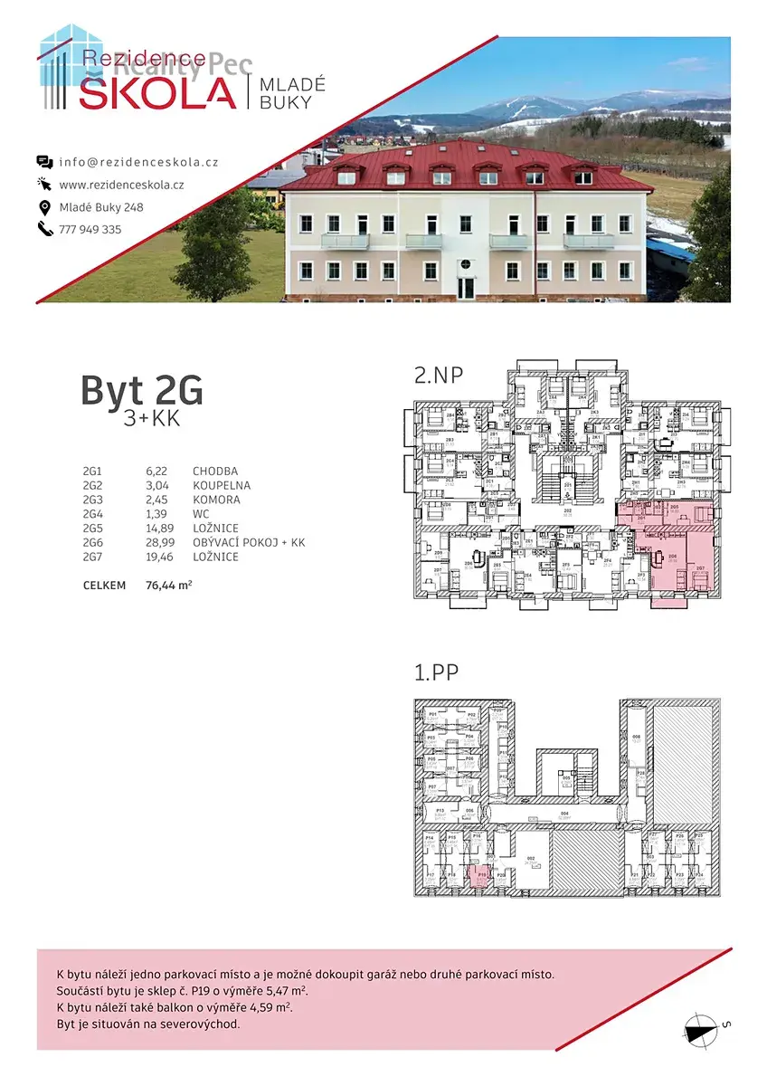 Exkluzivně nabízíme prodej bytu 3+kk s užitnou plochou 76,44m2 byt se nachází v moderním rezidenčním projektu v centru obce Mladé Buky. Nově zrekonstruovaná budova "staré školy" se přeměnila na bytový dům s 28 byty. Dům s výtahem zajišťuje pohodlné bydlení pro všechny věkové skupiny. Díky kvalitnímu provedení a nízkým nákladům na provoz nabízí ideální podmínky pro každodenní život. Byt je navržen s důrazem na komfort a funkčnost. Byt se nachází ve 2.NP s balkónem orientovaným na severovýchod a výhledem na Krkonoše, parkovací stání a sklep jsou samozřejmostí. Nabízí se i možnost dokoupení garáže.