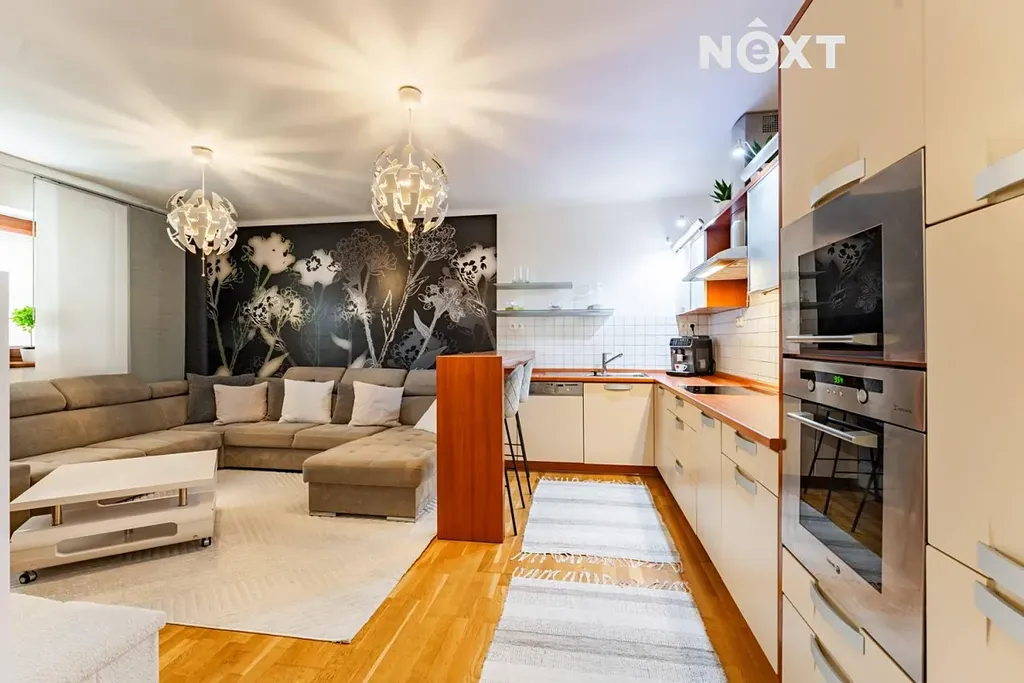 Horní podlaží tvoří vkusně řešený byt 3+kk. Srdcem tohoto patra je prostorný obývací pokoj propojený s plně vybavenou kuchyní, který vytváří příjemnou a útulnou atmosféru pro každodenní život i setkávání rodiny a přátel. Nechybí koupelna s vanou a ložnice se vstupem na prostornou terasu orientovanou na jihovýchod – ideální místo pro ranní kávu i večerní relaxaci.