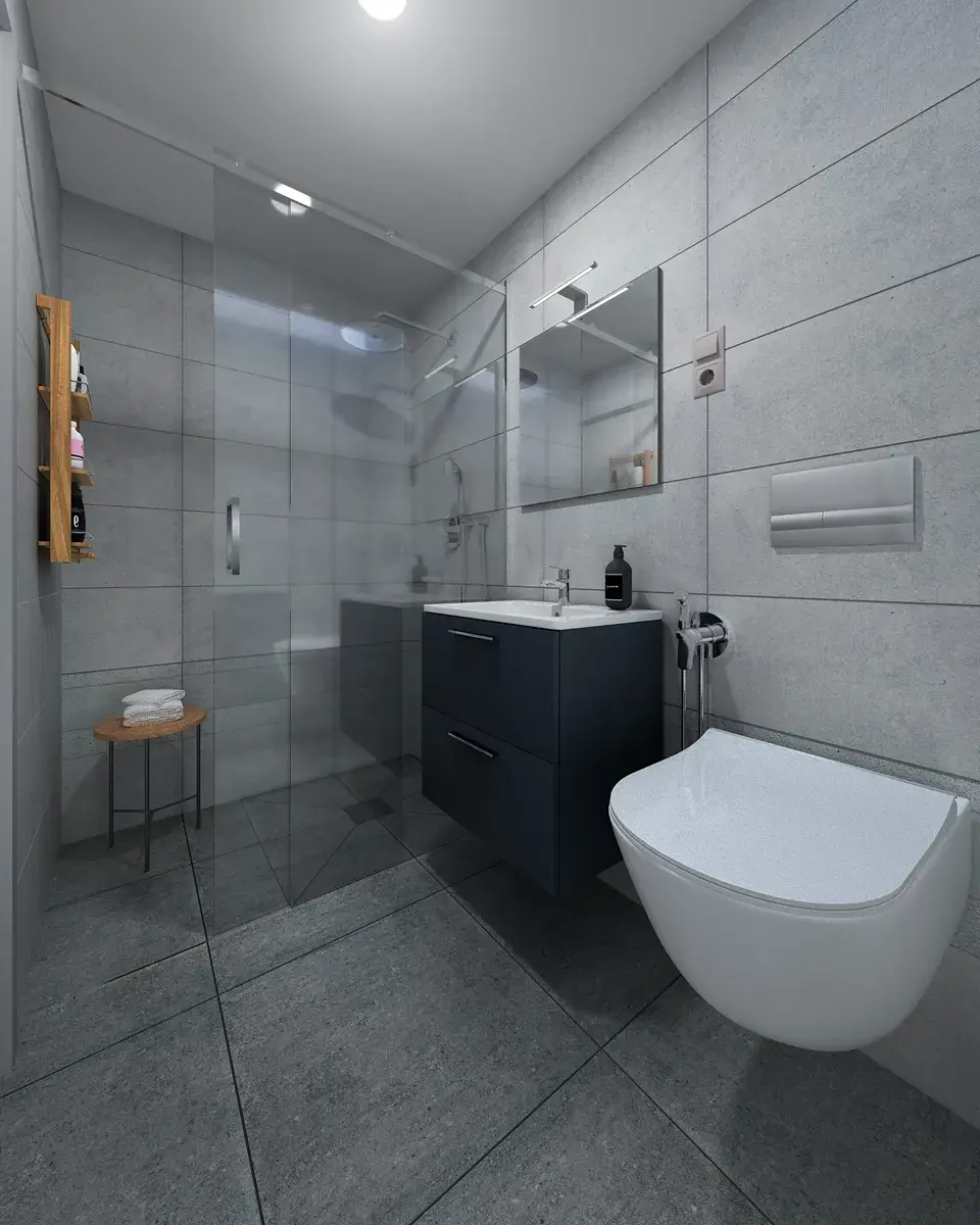 Rodinný dům K 90 je navržen jako jednopodlažní objekt s obytným podkrovím zastřešený sedlovou střechou. V rámci projektu Újezd u Brna je koncipován jako řadový dům nebo jako dvojdům. Součástí domu je garáž, která je od domu provozně oddělena. Jedná se o nejmenší dům z naší nabídky, dispozičně spadá do kategorie 4+kk. Dům je navržen velmi efektivně s minimalizací komunikačních ploch. Hlavní vstup do objektu je z ulice do vstupní haly , ze které je přístupné technické zázemí a WC. Zbývající část 1.NP zaujímá hlavní obytný prostor s jídelnou a kuchyňským koutem. Z tohoto prostoru je po lehkém ocelovém schodišti přístupné 2.NP. Ve 2.NP jsou umístěny tři pokoje a koupelna.