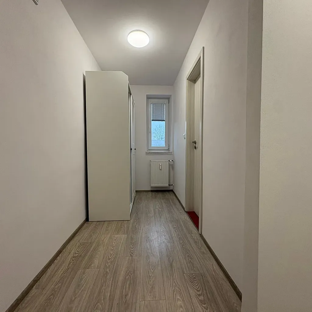 V předsíni je šatní skříň, v ložnici je komoda.