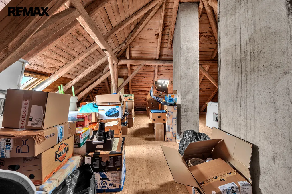 Půda je úložná s možností rozšíření o podkrovní byt. Na pozemku stojí garáž pro jedno motorové vozidlo. Plus zázemí pro chov slepic.